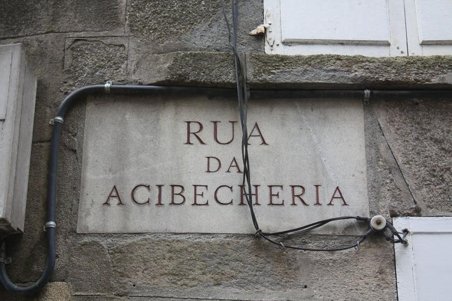 Debido a su función trascendental, la Azabachería fue la primera plaza urbanizada de la ciudad. Su nombre actual -se constata hacia finales del s. XVI- se debe a que en esta zona -y en la calle inmediata con la misma denominación- se concentraban los artesanos del azabache…”